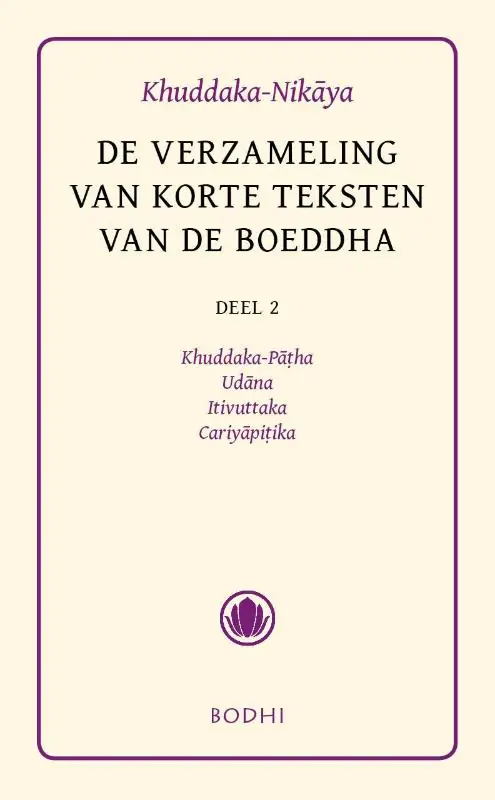 De Khuddaka-Nikaya is in de traditionele telling – na de Digha-, de Majjhima-, de Samyutta- en de Anguttara-Nikaya – de laatste van de vijf verzamelingen (nikaya’s) van de Sutta-Pitaka: de ‘mand’ (pitaka) van leerredes (sutta’s) die aan de historische Boeddha en zijn belangrijkste leerlingen worden toegeschreven. Deze verzameling maakt deel uit van de Pali-Canon en vormt samen met de Vinaya-Pitaka (de ‘mand’ van de orderegels) en de Abhidhamma-Pitaka (de ‘mand’ met scholastieke teksten) het corpus van gewijde geschriften van de Theravada. Deze Pali-Canon of Tipitaka (‘drie manden’) bevat de oudste bewaard gebleven geschriften van de boeddhistische traditie. De Khuddaka-Nikaya is een heterogene collectie van 15 werken: Khuddaka-Patha, Dhammapada, Udana, Itivuttaka, Sutta-Nipata, Vimanavatthu, Petavatthu, Theragatha, Therigatha, Jataka, Niddesa, Patisambhidamagga, Apadana, Buddhavamsa en Cariyapitaka. Een aantal daarvan behoren tot de meest bekende boeddhistische teksten. Dit boek bevat de integrale vertaling van de Khuddaka-Patha (‘Korte passages’), het Udana (‘Bewogen uitspraken’), het Itivuttaka (‘Aldus is het gezegd’) en de Cariyapitaka (‘Verzameling geschriften over het gedrag’). De Khuddaka-Patha is het kleinste van alle boeken in de Pali-Canon. Het fungeerde waarschijnlijk als een praktisch handboek dat een monnik uit zijn hoofd kende of bij zich droeg en waaruit hij kon reciteren. Het Udana bevat tachtig bewogen of geïnspireerde uitspraken van de Boeddha, meestal in versvorm, die worden voorafgegaan door een kort verhaal, waarin de omstandigheden waarin de uitspraak werd gedaan, worden aangegeven. Het Itivuttaka is een verzameling van 112 korte leerredes van de Boeddha, elk bestaande uit een proza-inleiding, waarin de essentie van de lering wordt gegeven, en een uitwerking in verzen. De Cariyapitaka omvat vijfendertig verhalen over vroegere levens, als mens of als dier, van de Bodhisattva, de Boeddha toen hij nog niet ontwaakt was.