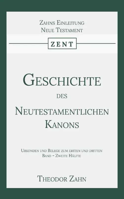 Geschichte des Neutestamentlichen Kanons Theodor Zahn (1838 – 1933) war lange Jahre als Professor für Neues Testament an der Universität Erlangen tätig. Als neutestamentlicher Wissenschaftler forschte Zahn auch intensiv im Bereich der Patristik. Sein Hauptaugenmerk galt dabei der Entstehung und Entwicklung des neutestamentlichen Kanons. Als ausgewiesener Kenner in den Bereichen Neues Testament und Patristik war Zahn an der damals aktuellen Diskussion um die Frage nach der Entstehung der Evangelien intensiv beteiligt. Seine theologische Arbeit war geprägt von philologischen Detailanalysen sowie einem strengen Konservatismus in theologischen Fragen. Theodor Zahn plädierte bei den Abfassungszeiten der Evangelien weithin für ein recht frühes Datum. Entgegen dem damaligen Zeitgeist hielt er das Johannesevangelium für ein einheitliches Werk, das der Apostel Johannes selbst verfasst habe. Die Festlegung des neutestamentlichen Kanons erfolgte nach Zahn bereits in der Mitte des zweiten Jahrhunderts. Zweiter Band: Urkonden und Belege zum ersten und dritten Band. Zweite Hälfte