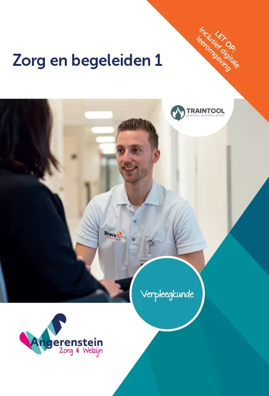 Zorg en begeleiden 1 is een van de acht boeken voor de opleiding mbo Verpleegkunde. Als verpleegkundige ondersteun je de zorgvrager op diverse gebieden, waaronder persoonlijke zorg, mobiliteit, uiterlijke verzorging, eten en drinken, en uitscheiding. Daarnaast biedt je ondersteuning bij het slaap- en waakpatroon wanneer dat nodig is. Al deze onderwerpen worden uitgebreid behandeld, zodat je als beginnende beroepsbeoefenaar weet op welke manier je passende ondersteuning kunt bieden en waar je extra op moet letten om problemen te voorkomen. Ook is er aandacht voor de ondersteuning tijdens de palliatieve zorg. Communicatieve vaardigheden zijn onmisbaar om goede ondersteuning te bieden op al deze gebieden, en ook daar wordt uitgebreid bij stilgestaan.